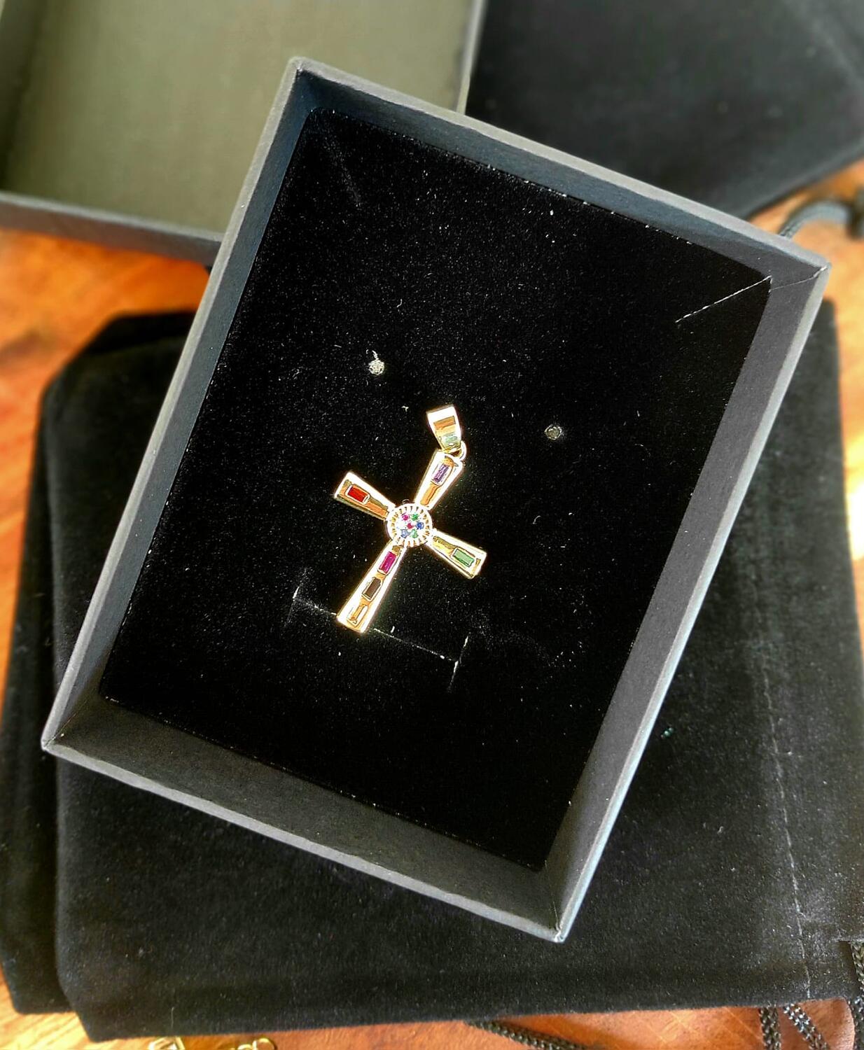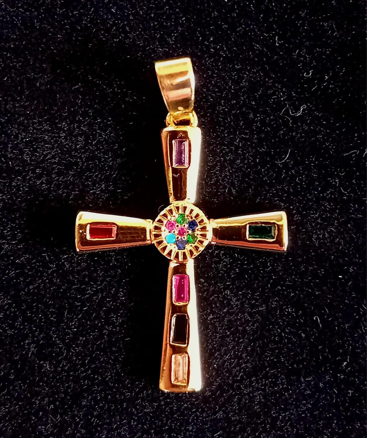 💎 Ciondolo a Croce con Gemme Multicolor - Un Simbolo di Fede e Stile ✨