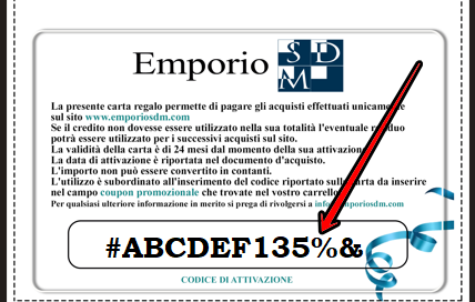 L'utilizzo è subordinato all'inserimento del codice riportato sulla carta da inserire nel campo "coupon promozionale" che trovate nel vostro carrello.