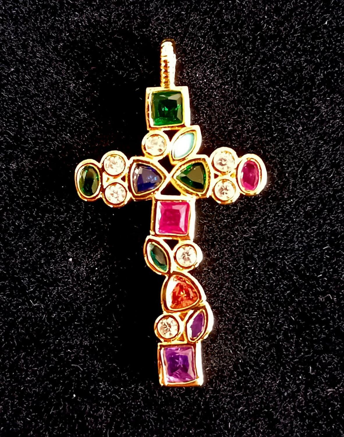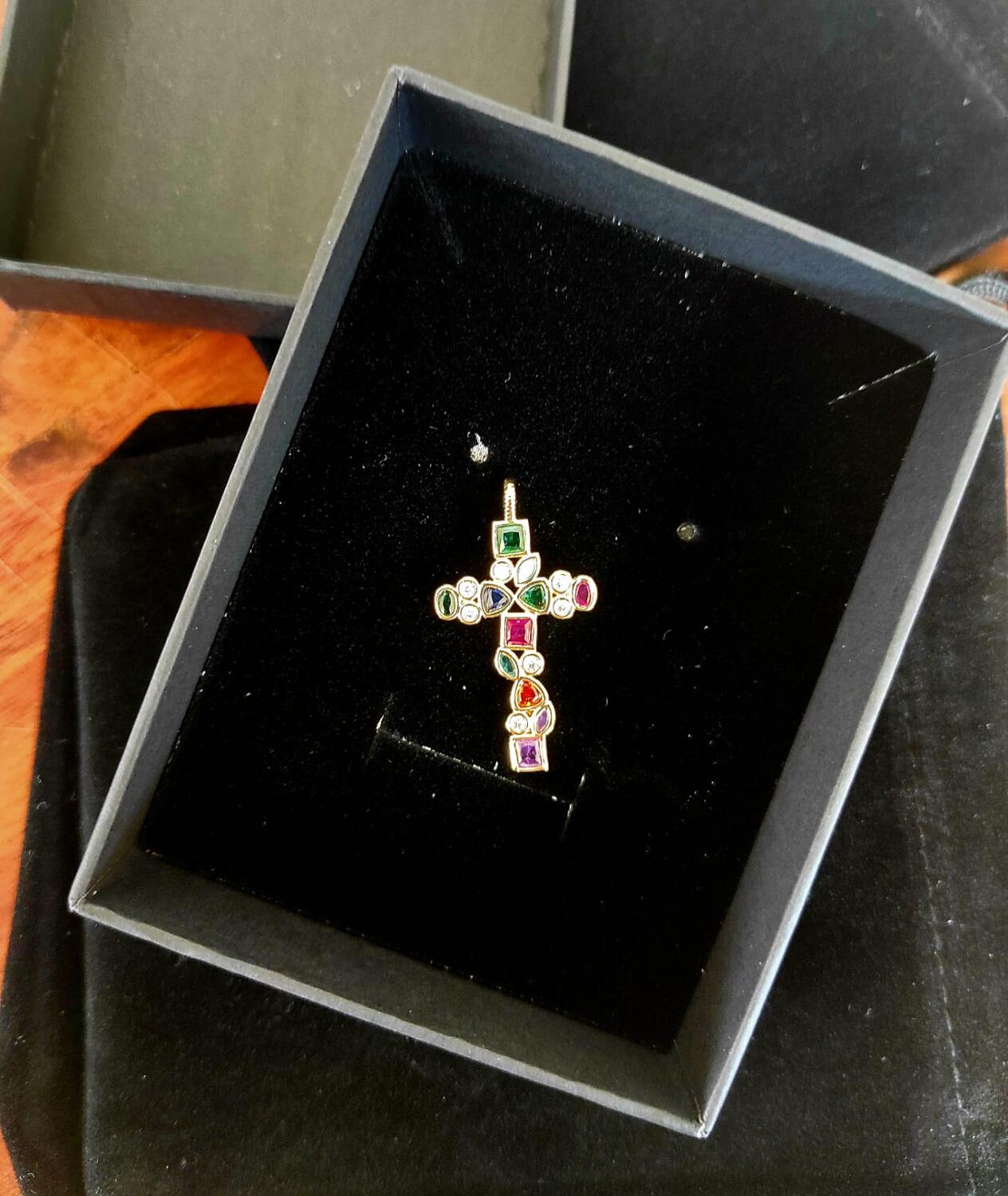 💎 Ciondolo a Croce con Gemme Multicolor - Un Simbolo di Fede e Stile ✨